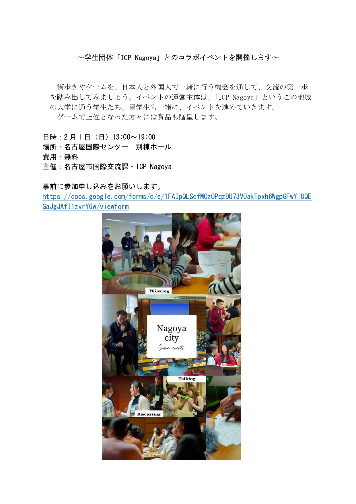 ・主 催:名古屋市国際交流課・ICP Nagoya