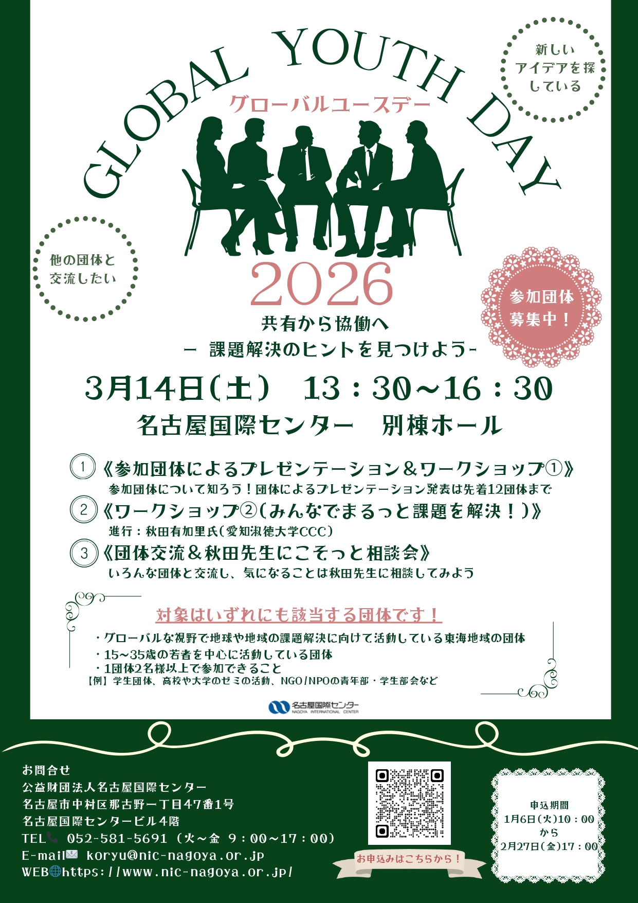 【学外情報】名古屋国際センター主催「NICグローバルユースデー2026」開催のお知らせ