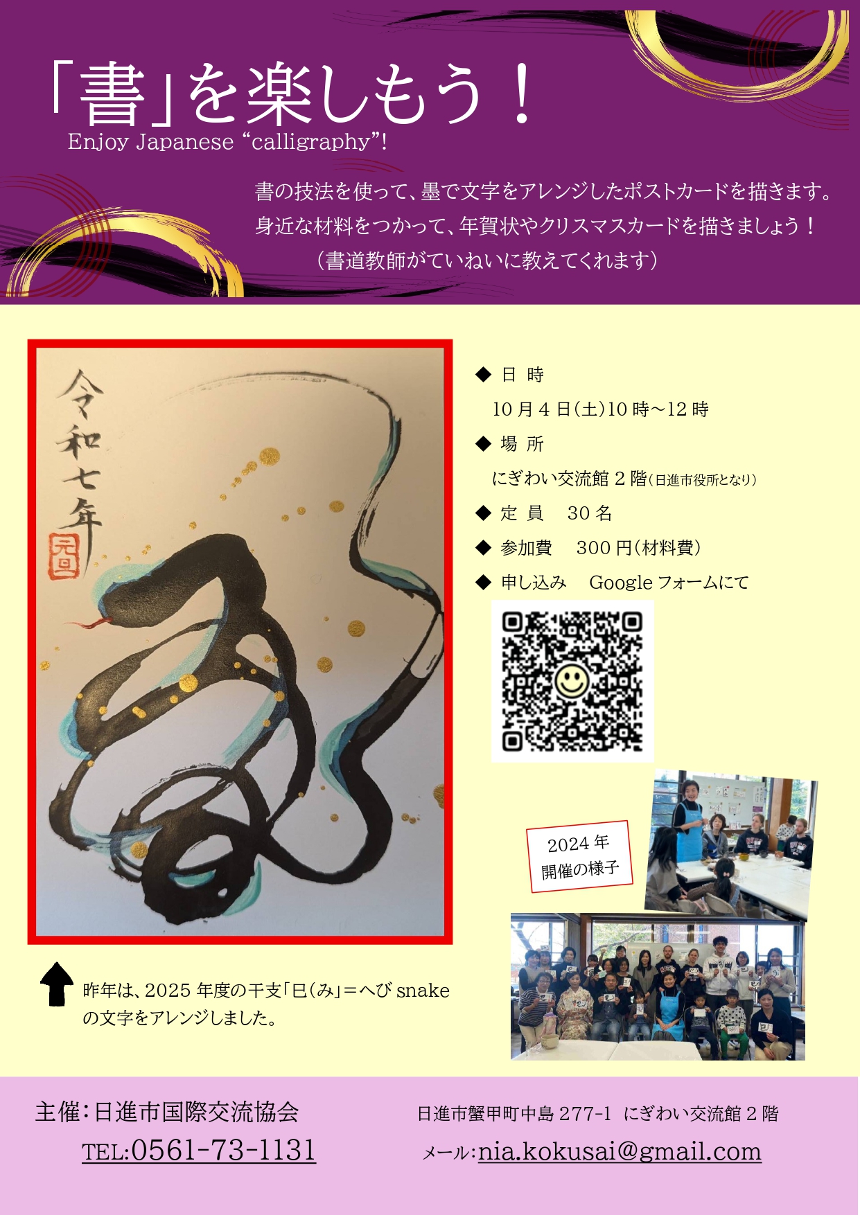 書道教師が丁寧に教えますので、一緒に身近な材料を使って年賀状やクリスマスカードなどを描きましょう!